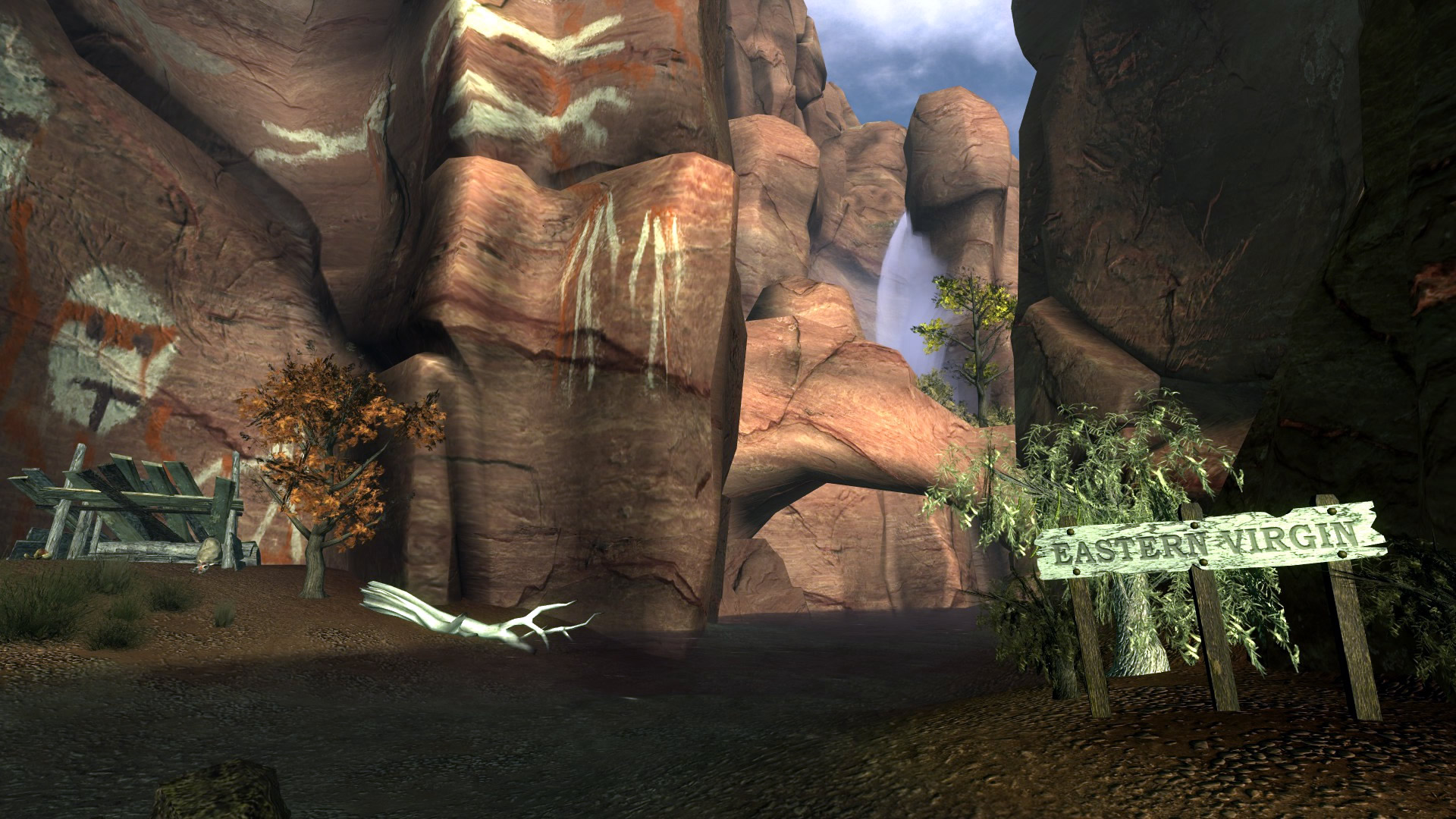 Східна Вірджинія — неглибока (0,5-1,0 м), звивиста річка шириною 2-3 м, довжиною близько 400 м, що бере свій початок в невеликому озері в районі локації «Табір Мертвих Коней» і впадає в основну річку Вірджинія. На правому березі перед входом в локацію обладнано місце для відпочинку. Річка протікає по дну глибокого каньйону, висота стін якого 50-150 м. Періодично русло річки штучно звужується, і в цих вузьких місцях на дні встановлені ведмежі капкани. Якщо йти від гирла до витоку, то на відстані приблизно 200 м від гирла на правому березі знаходиться наземний вхід в локацію «Печера Фоллен-Рок». Над табором Мертвих Коней є гірське плато, на якому живе стадо товсторогів і ховається ягня товсторога. Якщо весь час дотримуватися правого берега, то на відстані приблизно 400 м від гирла річки можна потрапити в підводний вхід локації «Печера Фоллен-Рок».