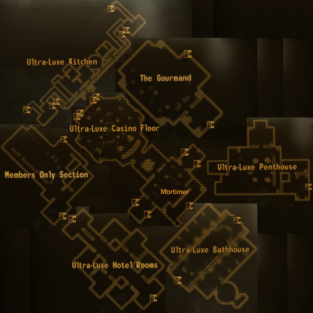 Щоб скористатися ліфтом, ведучим в ці номери, Кур'єру потрібен ключ, який видає тільки Мортімер. Його можна вбити чи пограбувати, а можна отримати цей ключ в ході виконання квесту «Їжа для гурманів».