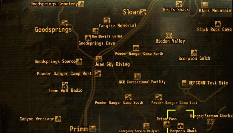 Трохи північніше печери Дід-Вінд, де мешкають кігті смерті, і південніше випробувального полігону РЕПКОНН. На схід знаходиться табір стрільців банди Гадюк.