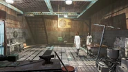 На першому поверсі знаходиться «дуже складне» термінал, збройовий верстак, хімлабораторія, пункт приготування їжі і верстат для створення броні. На другому стоїть ліжко (чужа власність) і лежить кілька різних препаратів.