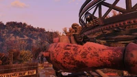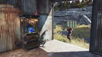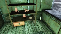 - На стенді Nuka-Cola, що має форму гігантської пляшки, на металевому стелажі.