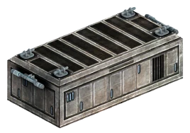 Являє собою великий металевий ящик з відкидною кришкою, що щільно закривається, двома ручками з підсвічуванням (на вузьких торцях) і чотирма скобами (на кришці) — ймовірно, для кріплення строп або фіксації при перевезенні. Призначений для зберігання різних предметів, включаючи боєприпаси Анклава, імпульсних і плазмових хв.