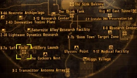 Локація X-7A Пробний пуск артилерії з'являється тільки у доповненні до Fallout: New Vegas — Old World Blues.