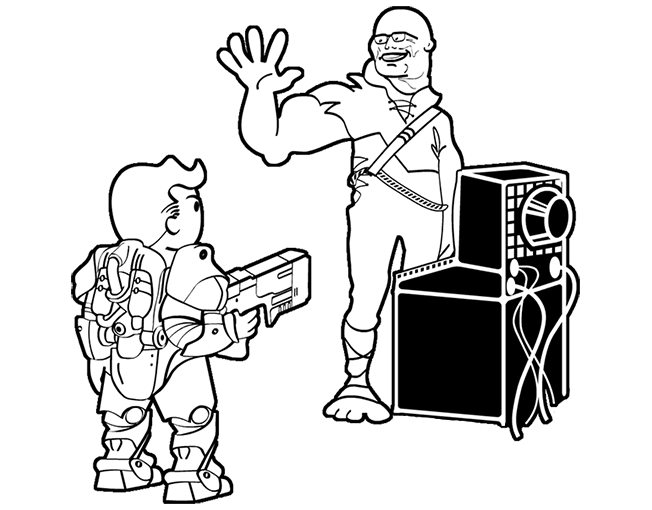 If Virgil still lives, the quest begins when the Sole Survivor speaks with Lancer Captain Kells either during Liberty Reprimed after convincing Madison Li to work on Liberty Prime (or after speaking with Professor Scara) or after that quest has been completed, and after the side quest Duty or Dishonor has also been completed. Kells orders the player character to kill the super mutant Virgil. The Sole Survivor then must find and talk to Virgil. They will then have the choice to either kill Virgil or spare him and lie to Captain Kells. Alternatively, Kells can be convinced with a Charisma check that Virgil has been cured and is no longer a threat; this option may be taken while receiving the quest or after going to meet with Virgil. After picking either option, the Sole Survivor must report back to Captain Kells, who will reward them with the Visionary's T-60c helmet.
