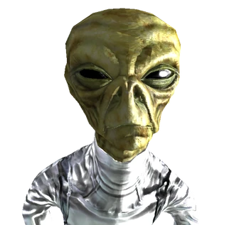 Aliens, known as zetans by pre-War conspiracy theorists,[1] are an extraterrestrial yellowish-green skinned humanoid race from an unknown planet. The only thing known about them is that they use their ability to travel space to probe other planets and species for information.