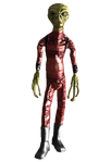 The aliens, known as Zetans, are relatively small, green yellowish-skinned humanoid beings. Their bodies, elongated with a small chest, are lean. Their legs are shorter and jointed differently than a normal human and their limbs are also proportionally different than a normal humanoid.