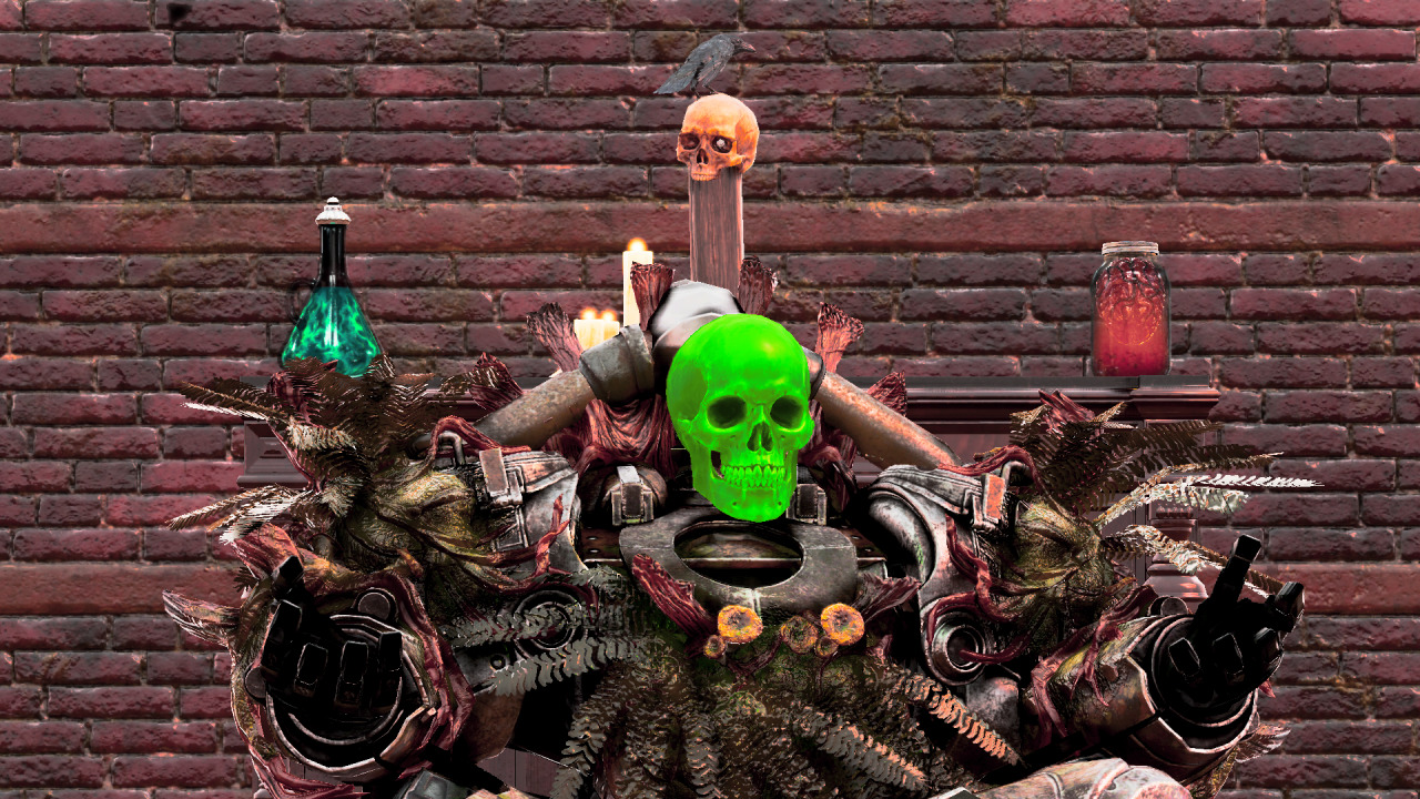 When the Skellscream power armor skins were added in Night of the Moth, a visual bug prevented the glass tank model from rendering, creating the impression of a standalone floating skull. This was fixed in a patch several months later.