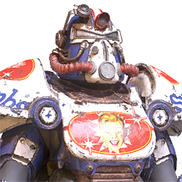 No need to worry, even your enemies will love you in this bomb Warhead paint! This is a unique skin that completely alters the appearance of your Power Armor. It can be equipped on the Excavator, Raider, Strangler Heart, T-45, T-51, T-60, T-65, Ultracite, X-01, Hellcat and Union Power Armors.