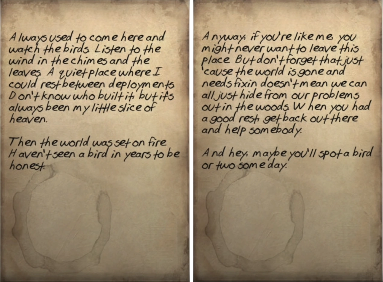 Birdwatcher's note is a paper note in Fallout 76.