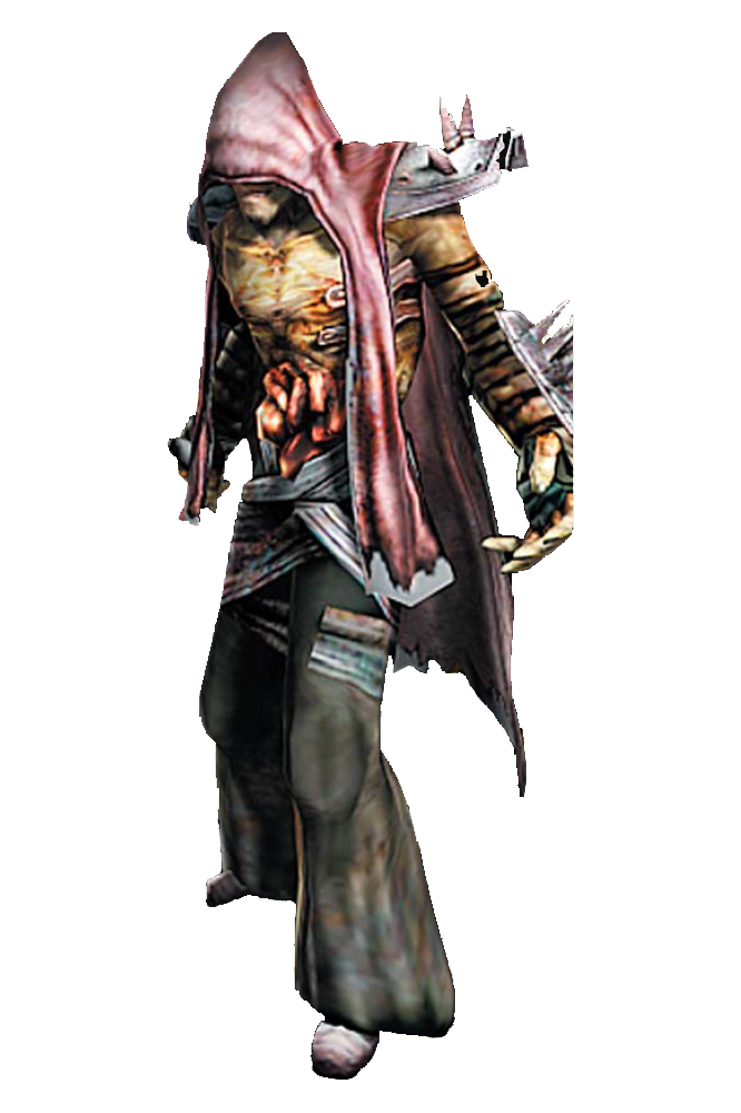Blake is unusually large for a ghoul, reaching a super mutant's height if not their bulk. He wears a hood and some bandages. He speaks in cryptic religious Shakespearean language, many of them altered parts of William Blake's songs and poems. His weapon of choice is a large, spiked, sword-like staff.