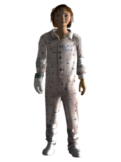 Blast Off pajamas are pre-War children's all in one clothing found in Fallout 3. The matching Blast Off helmet can be found in the game files but is not actually used in-game.