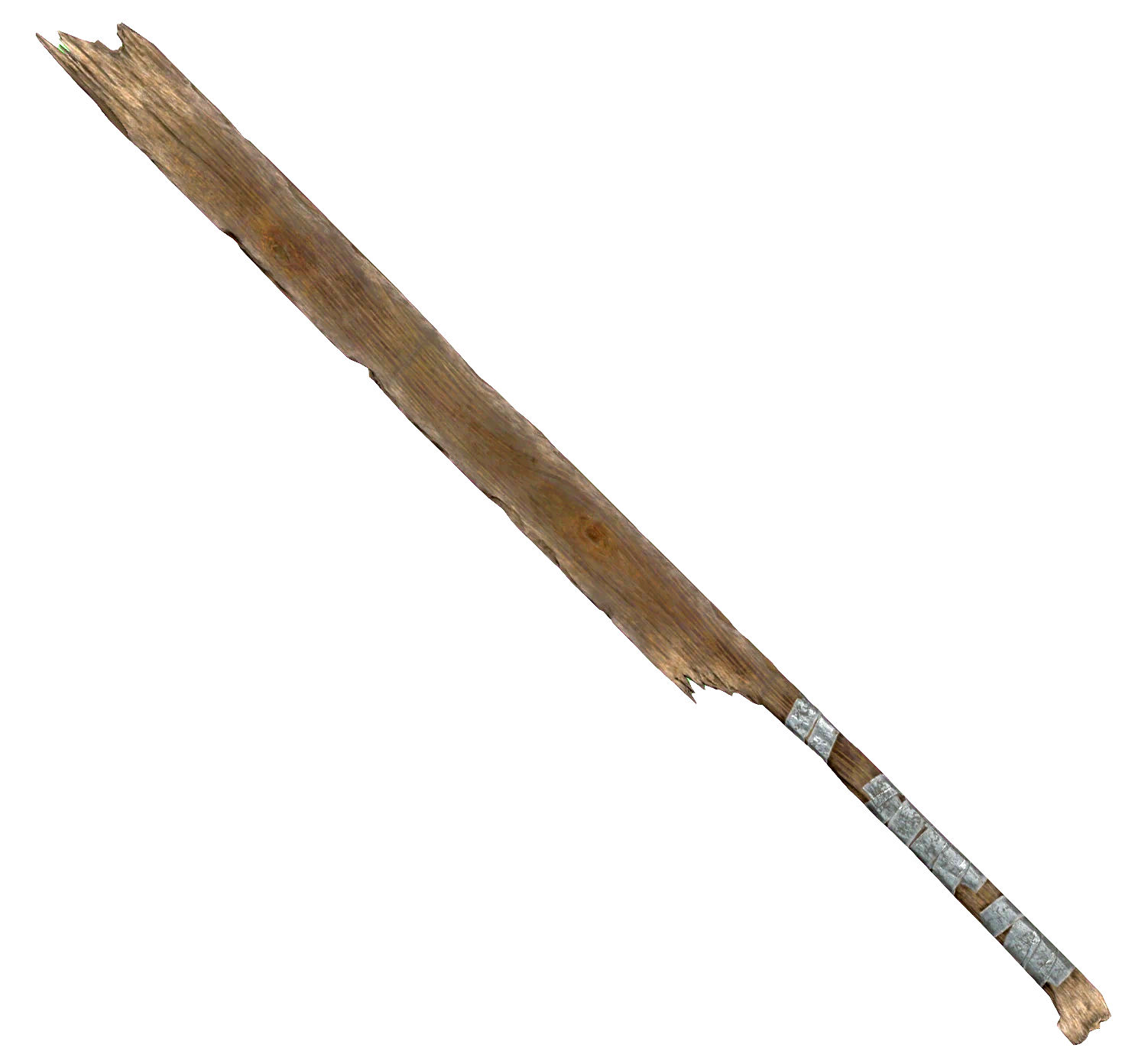 It is a big chunk of wooden plank with a grip wrapped in duct tape. It weighs the same as a baseball bat , though it is much cruder and commonly found in the hands of super mutants .