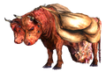 As a result of the constant exposure to radiation, these formerly normal cows have sprouted a second, independent head. Ironically, after so many years of having this mutation, brahmin born with only one head are considered mutants. Brahmin have eight stomachs, and, according to Rose, male brahmin have four testicles. Their skin has turned a toasty, dusty orange-red color from exposure to radiation, and their horns have become a dirty brown. Their udders almost drag on the ground.