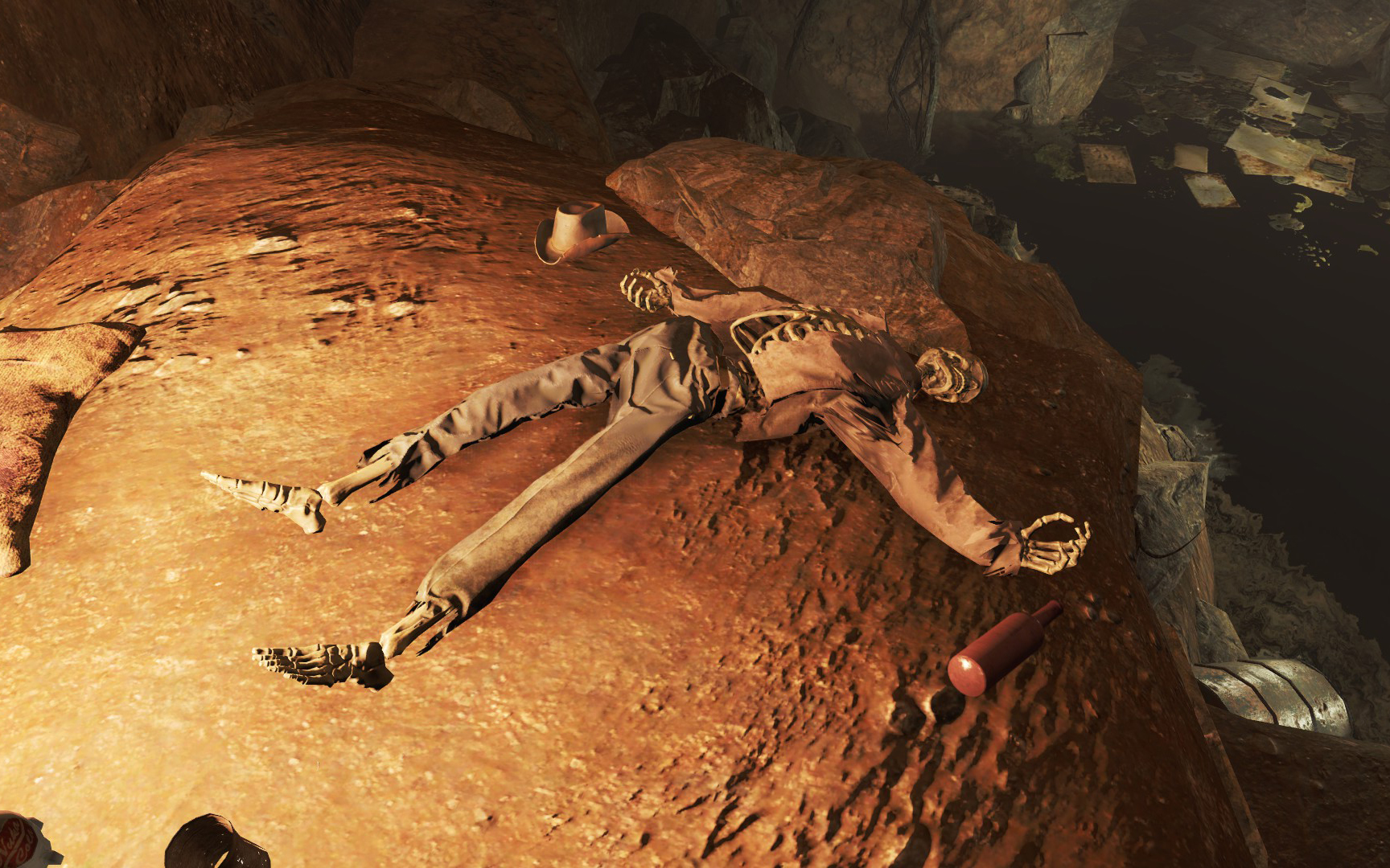 Brent Savoldi was a Minuteman before his death.[1] He and his squad fought against raiders near Malden, but they were all killed.[1] His skeleton can be found in the cave leading off of the Old Gullet sinkhole, next to a lantern and his hat. The hat can only be found while the quest Fallen Hero is active.