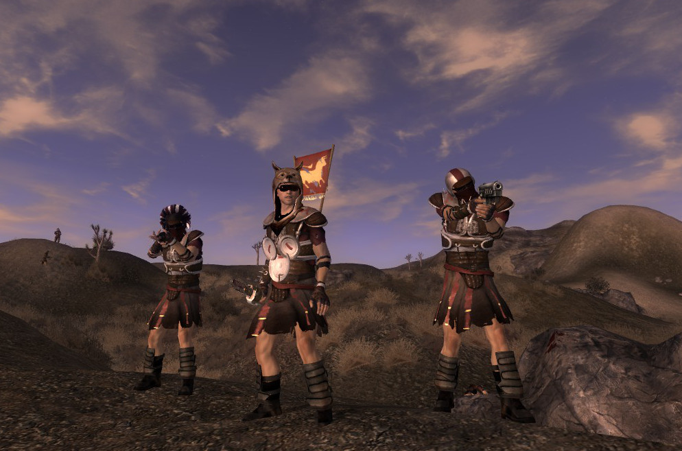 After this first encounter, more legionary assassin squads will spawn to track down and attack the player once every three days. They will similarly be non-hostile and talk to the player character before turning hostile unless Legion reputation has reached Vilified, at which point all legionary assassins will immediately be hostile on sight. However, assuming this happens before receiving the Mark of Caesar on the New Vegas Strip, reaching that point in the main questline will reset Legion reputation to Neutral, which will also stop the hit squads. After this point, dropping Legion reputation to Shunned again will cause the assassins to resume attacking. This can happen without Beware the Wrath of Caesar! being triggered, since that quest is dependent on main questline progress and/or reaching Vilified Legion reputation, although the nature of this quest makes it possible to trigger Beware the Wrath of Caesar! via accruing negative Legion rep.