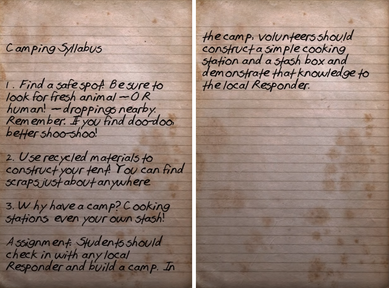 Camping Syllabus is a paper note in Fallout 76.