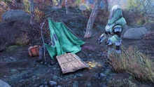 The note can be found to the northeast of the Morgantown Airport, near what remains of Miguel Caldera and his camp. His Protectron, Mr. Fluffy, stands nearby.