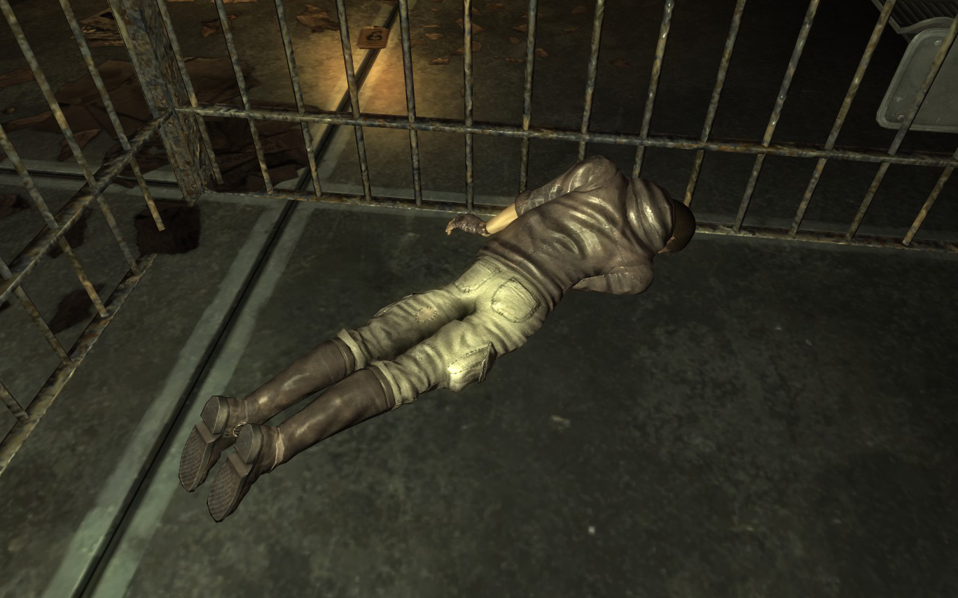 Carter lies dead in a prison cell in Vault 3, which is occupied by a group of Fiends led by Motor-Runner. His friends, Rick Lancer, Rachael and ghoulDennis are still alive and are trying to escape a certain death.[1]