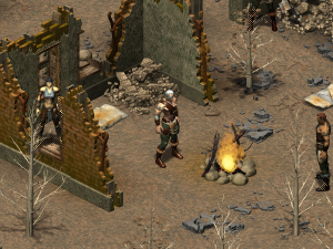"Greetings to the Brotherhood of Steel. You are speaking with Charon, Elder and tribal Father to Brahmin Wood. You have arrived none too soon. Our village has fallen to raiders who rode out of the darkness. Some of my people escaped death or bondage by fleeing into the wasteland, but without tools and shelter.... This must be the doing of the Brahmin God of Fate. With the bandits we trade away our present, in the Brotherhood we trade away our future. *Sigh*... very well Initiate, I fully agree to your terms, but I fear this decision will haunt me till I reach the Eternal Grazing Field in the heavens. Our villagers are being held prisoner in the camp. Save them, and you will have more people to aid your cause. Lose them, and you will be cutting Brahmin from your own herd."