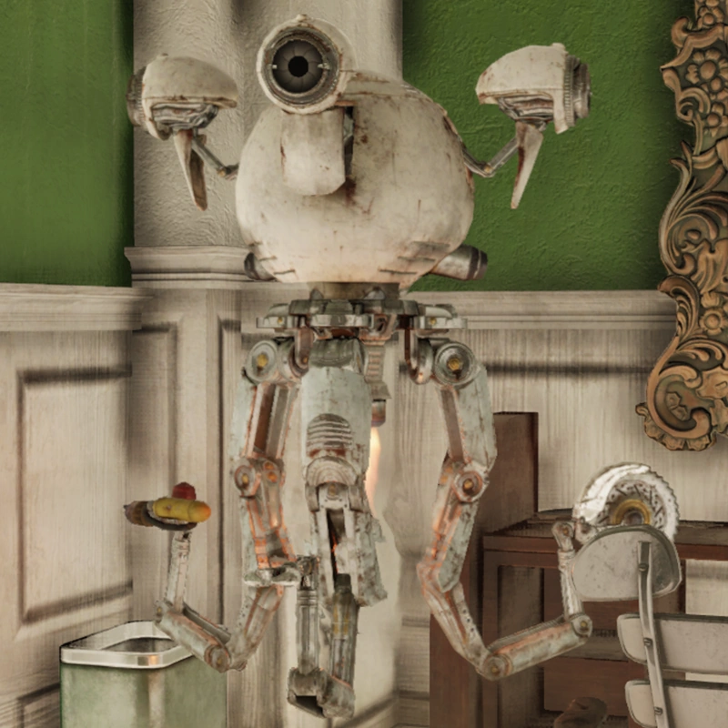 Cheryl is one of the four automated barbers at the Whitespring Resort's Elegance salon. The salon takes no walk-ins, so Vault Dwellers cannot receive services from them.[1]