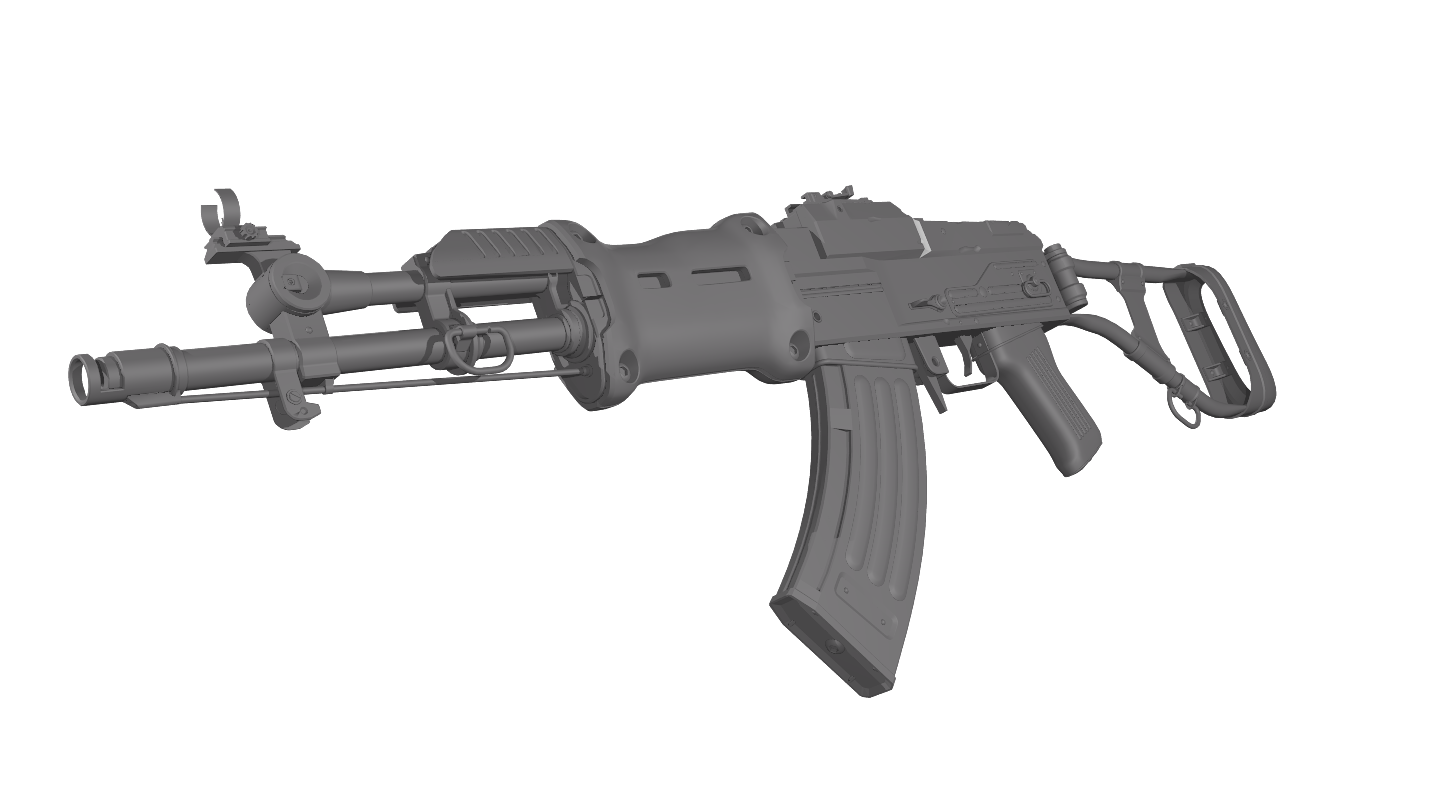 It is an untextured, high-poly model that resembles the Chinese assault rifle featured in Fallout 3.