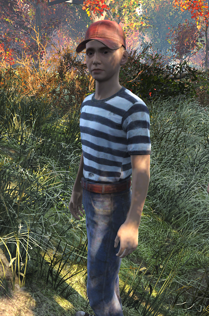 Before the Great War, Chris was one of the neighbors of the Sole Survivor who was restoring an old Corvega with his mother, Rosa. When the bombs fell, they did not make it to safety. He can be found 210 years later roaming the Commonwealth and Boston with Ms. Rosa and a few other pre-War citizens turned feral.