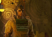 ↑Fallout 3 Official Game Guide Game of the Year Edition p.66: "Confessor Cromwell Little is known about Cromwell's past: He arrived in his early 20s (he's now 44) and was granted permission to stay due to the blessing and high standing of his successor in the church, who fostered him in the ways of Atom. Eventually, Cromwell proved to be a valuable resource in protecting and aiding the town, and he became an eccentric distraction to most of the citizens of Megaton." (Fallout 3 Official Game Guide Game of the Year Edition Wasteland Census)