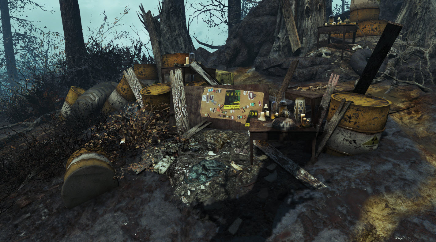 True to their beliefs, church members in the Commonwealth rely almost exclusively on radiation weapons in combat, mainly the very dangerous gamma gun and the even more devastating Nuka grenade. They also make liberal use of nuke mines to secure their strongholds, making assaulting those an even more hazardous undertaking. While the Children usually only wear rags they boast a significantly large health pool compared to similar NPC types. In addition, the amount of damage they can inflict is staggering, especially given their nearly unerring aim with their Gamma guns.