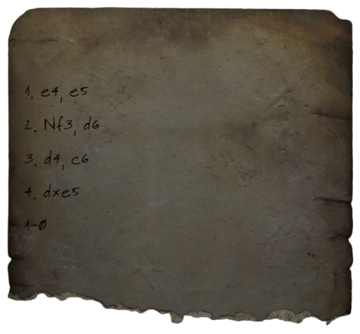 Correspondence chess is a paper note in Fallout 76, introduced in the Expeditions: The Pitt update.