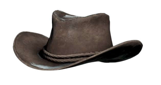 This is one of five cowboy hat variants that appear in Fallout 76. This hat is brown like the similarly-named Atomic Shop cowboy hat, but is taller, has a more pronounced brim, as well as rope for a hat band, rather than a strip of cloth.