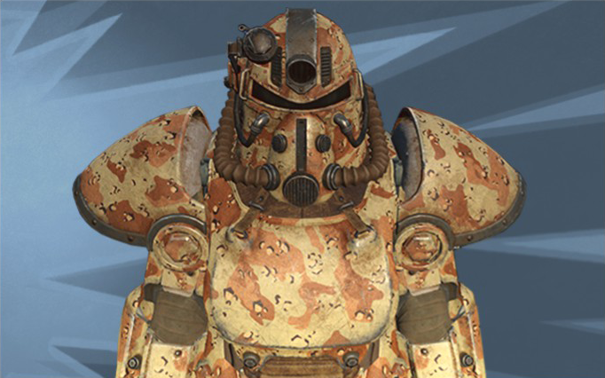 This unique Power Armor paint job will keep you hidden just long enough to destroy anyone - or anything - stupid enough to venture into your neck of swamp. | |||