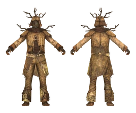 The Cultist elder robe and cultist elder hood are an outfit set in Fallout 76, introduced in the Night of the Moth update. It is worn by high priests of the Followers of the Winged One.