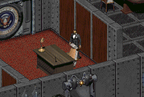 - ↑ 2.0 2.1 2.2 Dick Richardson: "{160}{prs15}{I am the President of the United States of America. The Vice-President is in the office outside. If you belonged here you'd know that. Who are you and what are you doing here?}"