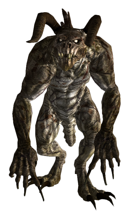 Found only within the Dead Wind cavern in the Mojave, the legendary deathclaw is an alpha male deathclaw that managed to survive long enough to achieve a size a full 25% larger than regular adult deathclaws, with massive horns and claws to match. This particular specimen is responsible for the death of a Brotherhood of Steelpaladin who tried to explore the cave.