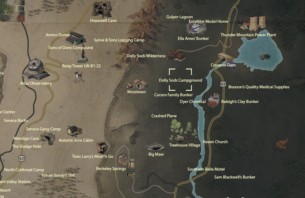 Dolly Sods Campground is based on the real-world Red Creek Campground, which is also located in the immediate vicinity of the real-world Dolly Sods Wilderness.