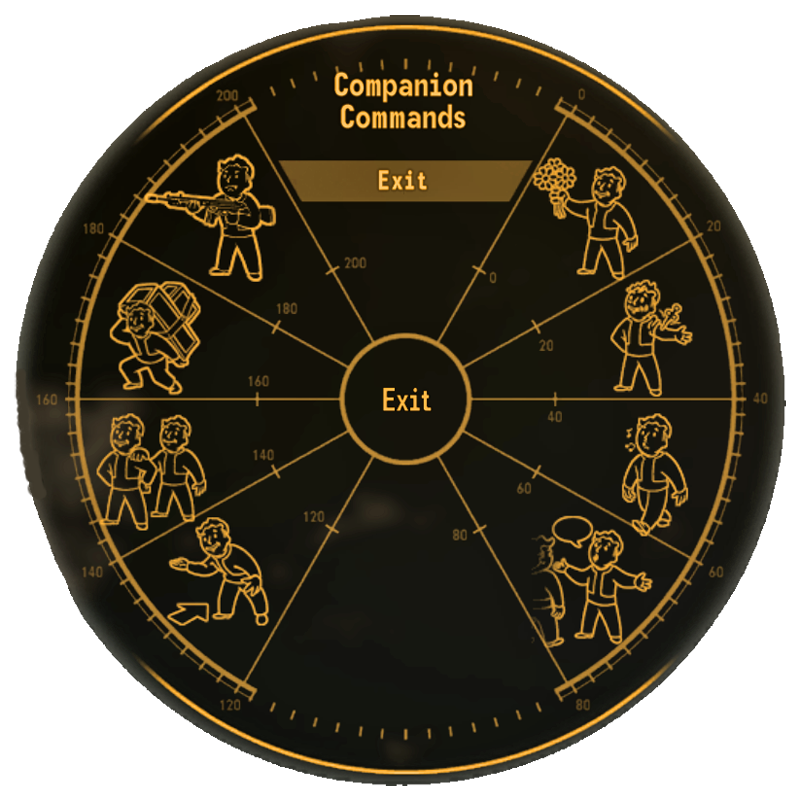 A new companion wheel has been added to quickly and easily give companions commands such as "Talk," "Use Ranged Weapons," and "Wait Here." It also makes it easier to restore their health using stimpaks and swap equipment. The companions also have specific likes and dislikes; giving a sniper companion a shotgun, for example, will result in a negative impact and decreased effectiveness.