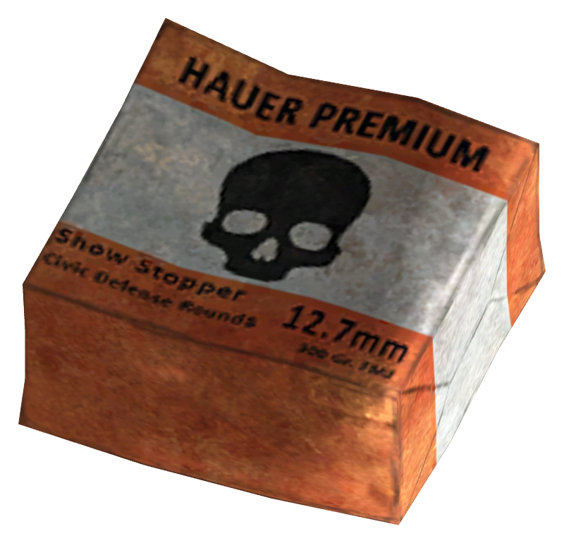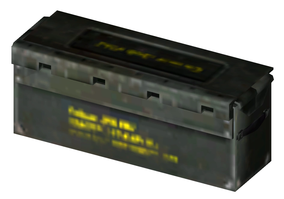 Ammunition or ammo is the term used for expendable ordnance material used by the weapons of Fallout: New Vegas; such as powder, balls, shot, shells, percussion caps, rockets, missiles, energy, etc. The purpose of ammunition is to project force against a selected target or area.