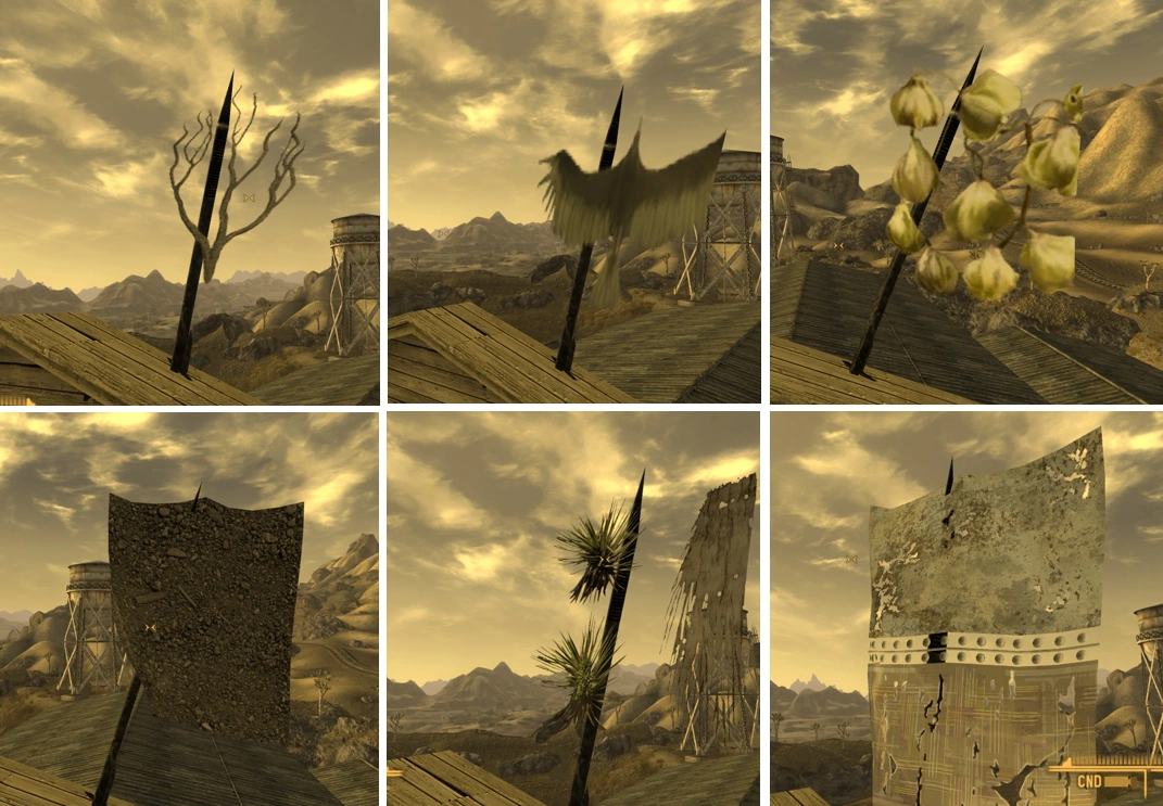 - The Legion flag above Nipton Town Hall will not show the faction's logo and instead, will rotate between several other textures, including branches, birds, the ground, and water. [verified]