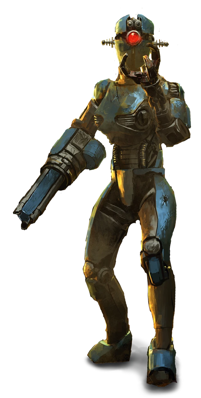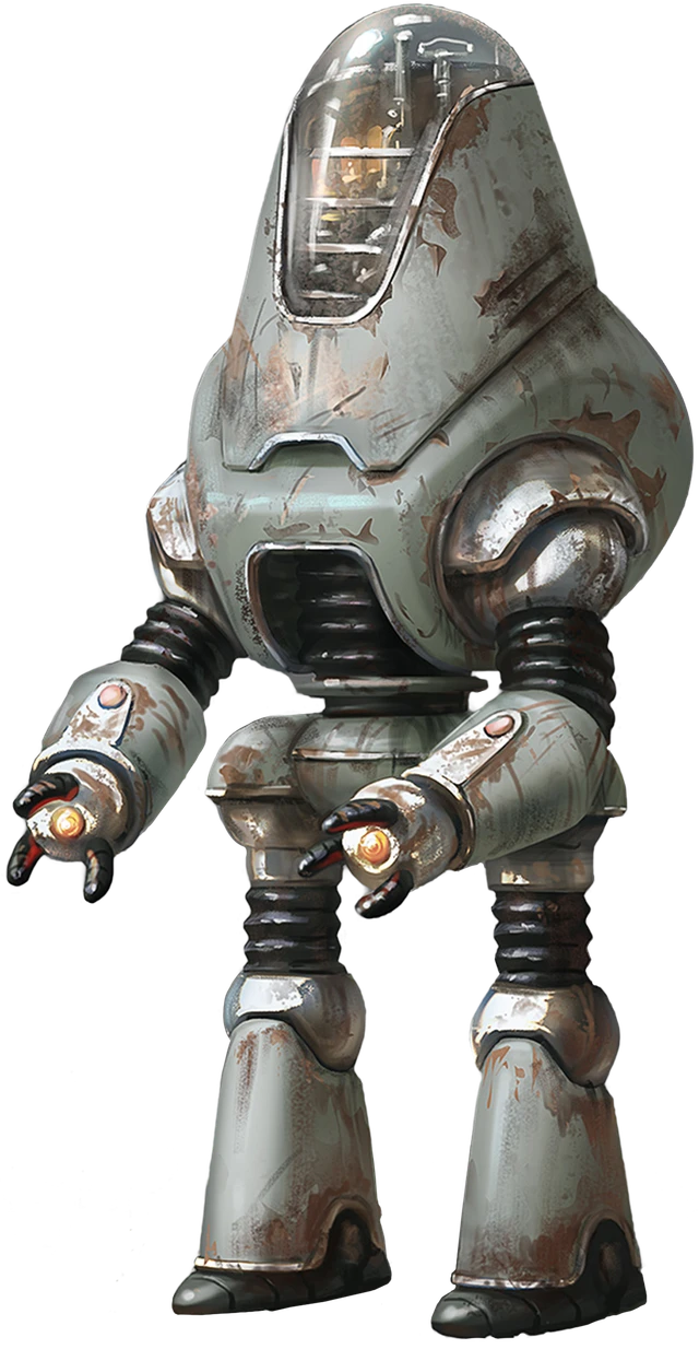 You are one of these domestic automatons, produced some time between 2037 and 2077, seeking to provide every household in America with butler-like servitude. Equipped with state-of-the-art programming, you have initiative and can adapt your own coding to learn more from your environment. This capacity for self-determination is what has enabled your survival beyond the Great War; where other robots may have broken down, you have managed to shake loose from the shackles of your programming and find a life for yourself.