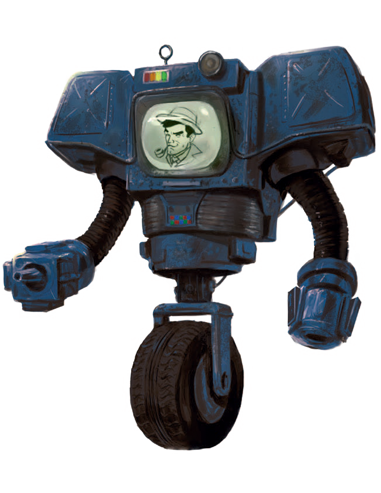 You are a robot, with the Mk I operating system designed by RobCo Industries. You have forward-facing visual sensors that can detect the visual spectrum. You are also immune to radiation and poison damage, but you cannot use chems, nor can you benefit from food, drink, or rest. You cannot recover your own injuries or heal health points without receiving repairs (see Fallout: The Roleplaying Game Core Rulebook, p.34).