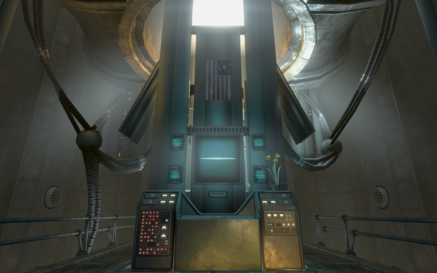 With the knowledge they possess, the G.E.C.K. and the means to activate Project Purity, the Brotherhood assault the Jefferson Memorial, spearheaded by a giant robot named Liberty Prime. In the control room of Project Purity, the player character is confronted by Colonel Autumn and has the choice to persuade him to give up or kill him. Dr. Li informs the Lone Wanderer that the purifier is ready to be activated, however, the activation code must be input manually from the lethally irradiated control room. To make matters worse, the purifier has been damaged and will self-destruct if not activated.