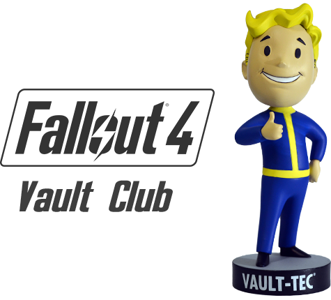 GAME UK's "Fallout 4 Vault Club" promotional image, featuring the Vault-Tec bobblehead to be provided as a pre-order bonus.