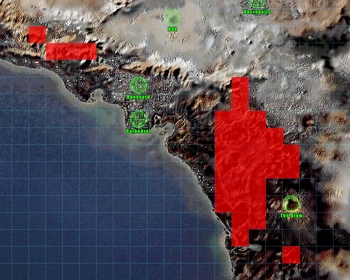 Despite the name, this encounter table is used in many places, including the mountains around Mariposa Military Base, around Vault 13, three mountain squares adjacent to the Raiders camp tile, one mountain square adjacent to the Junktown tile (top left), mountains near Adytum, and the mountains adjacent to The Glow. It's essentially the default mountain encounter map.