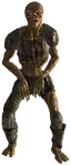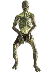 Swamp ghouls are feral ghouls that exclusively inhabit the swamps of Point Lookout. Swamp ghouls wear tattered shorts similar to those commonly worn by tribals. They are found in large numbers in and around the Turtledove Detention Camp. They exhibit characteristics similar to those of normal feral ghouls, but their skin's general appearance is more of a gray color and they are also considerably weaker. However, the swamp ghouls tend to appear in greater numbers than their Capital Wasteland counterparts.