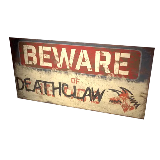 | 6 | ![]() | Beware of Deathclaw Sign | Deathclaws in your backyard? Hang this sign to warn any couriers! | 006C20B7 | |