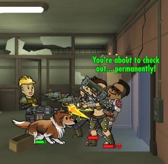 Get in Line is a random encounter in Fallout Shelter. It can be triggered by any dweller who is exploring the wasteland.