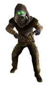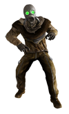 Unique to the deadly labyrinthian streets of the Sierra Madre, the "ghost people" are the unintentional legacy of an agreement made between the Madre's pre-War owner Frederick Sinclair and executives of Big MT. In exchange for significant funding and access to advanced technologies developed in the Big MT research facility, Sinclair gave them free rein to use the Sierra Madre as a giant testing ground for experimental technologies. One of these experiments, entirely unknown to the construction workers employed by Sinclair to build the Villa, was the use of an experimental chemical developed by Big MT's Z-43 innovative toxins plant.[1][2] The chemical turned out to be extremely toxic, airborne, and readily absorbed by the skin. These effects were first discovered when the low-quality construction of the Villa led to the ventilation system at the Puesta del Sol switching station backing up and starting to spew a rust-colored cloud that caused immediate, severe lung and tissue damage. The incident left three workers hospitalized, forcing Mr. Yesterday to hurry and try to conceal the incident from Sinclair.[3]
