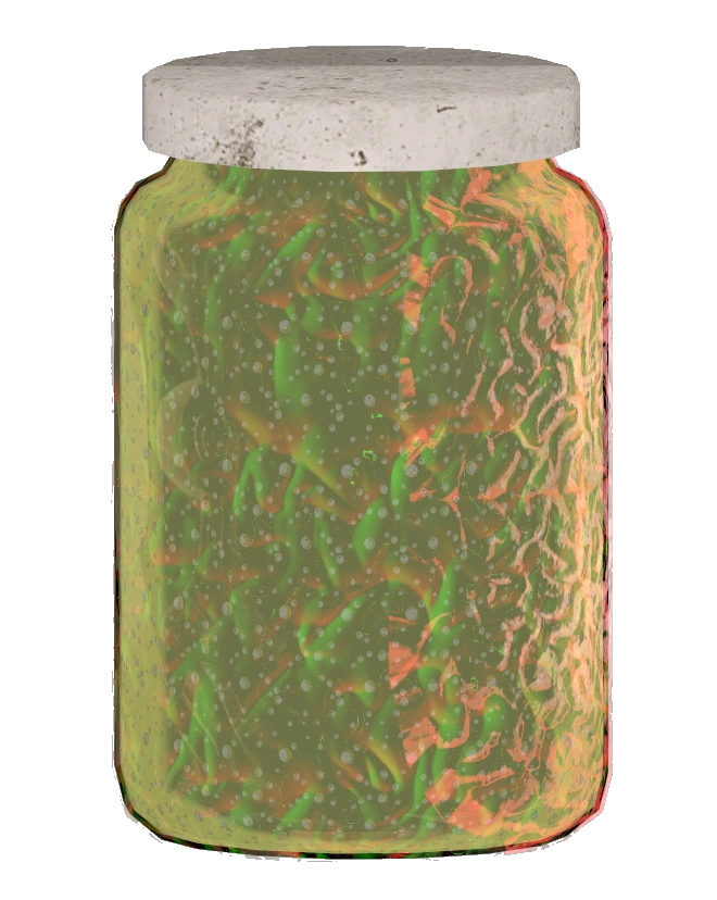 It is the brain of Gina Bailey, preserved in a jar labeled "Gina. Oh, poor Gina..." It is ready for installation into a Robobrain and can be made into the prepped Gina brain. With Intelligence 8+, it can be further examined to determine that Gina has a depressed personality but a complex folding of the cerebral cortex.[1]
