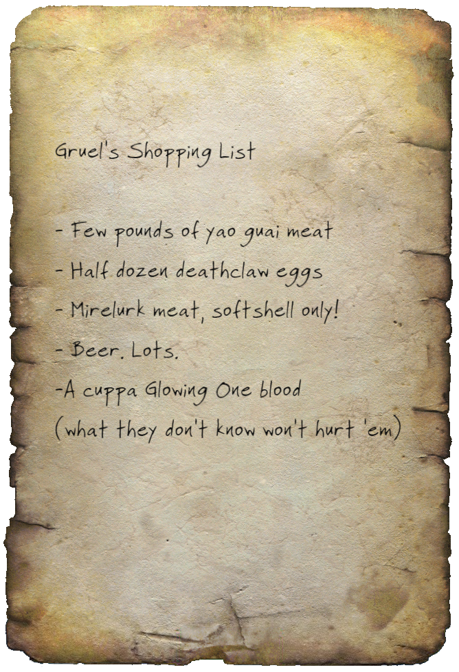 Gruel's Shopping List
