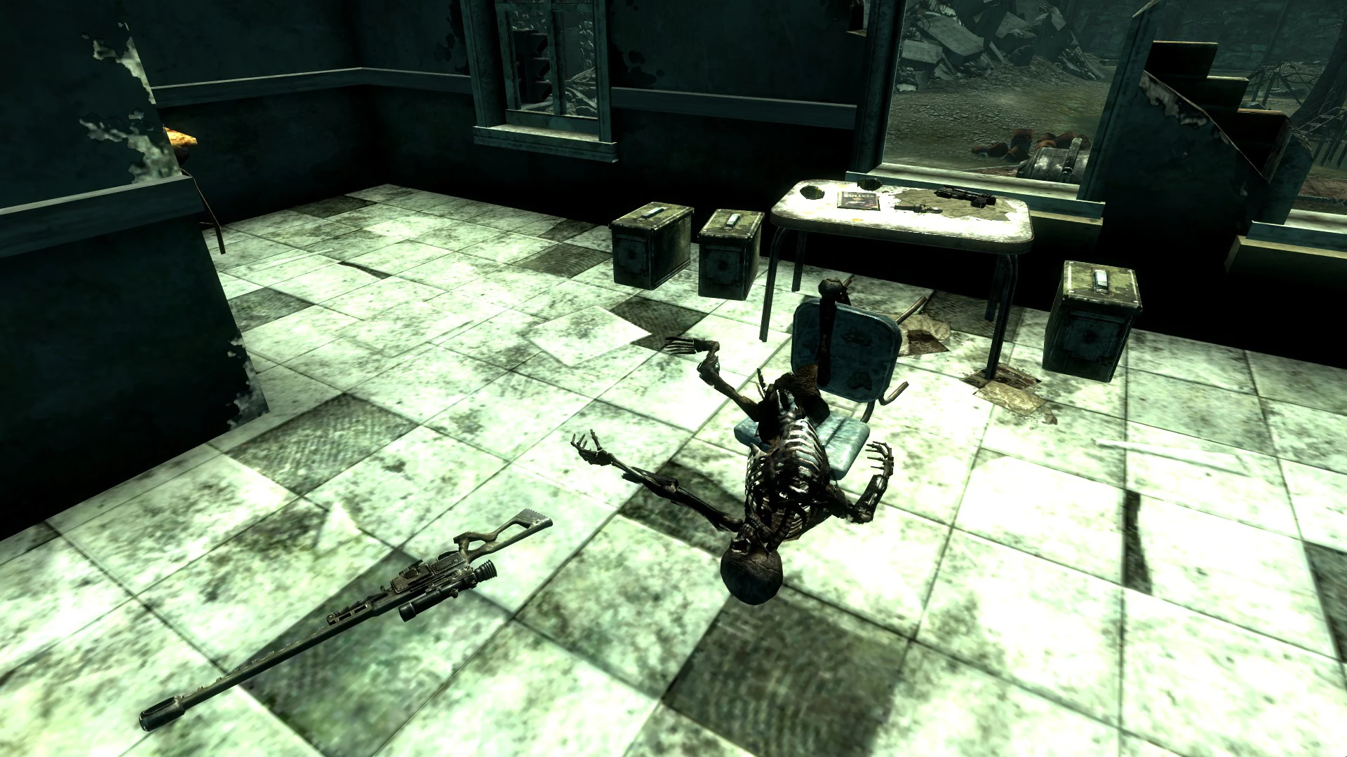 In an ammunition container in the burned out bus near the red railroad car northwest of the building that is north of the office (not the same red car where Dogmeat is found). One can get the key from the random encounter More Than Just Scrap, or by picking the Hard lock. |